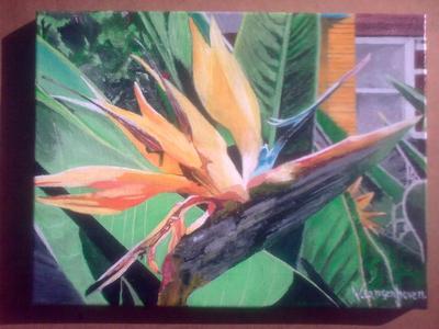 Beautiful sterilitzia reginia acrylic painting done by Walleed langenhoven 30cm by 40cm for sale R1500