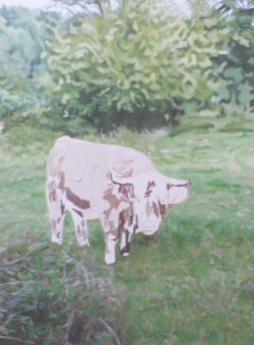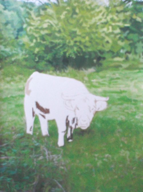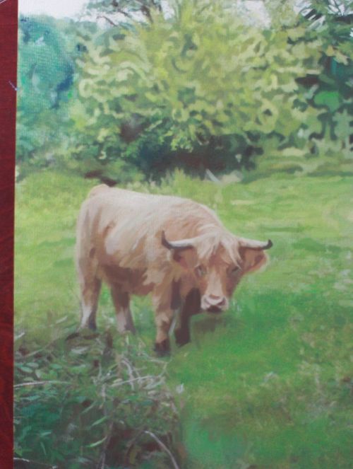 7, The following photographs show how I add broad colours without blending to the bull's coat. I add them darkest to lightest but it doesn't matter much either way.