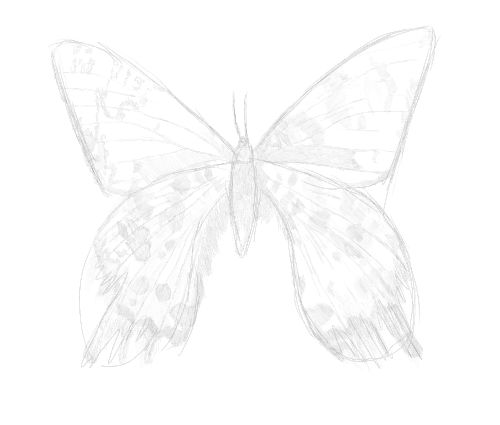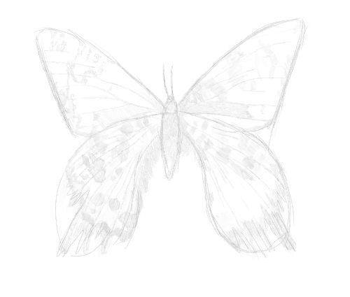 6. Switch to your cartridge paper and trace the butterfly onto it. Do this loosely. We are aiming for a sketchy effect.