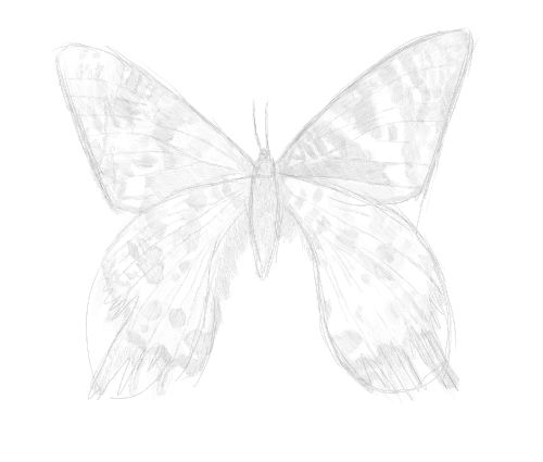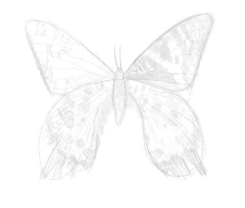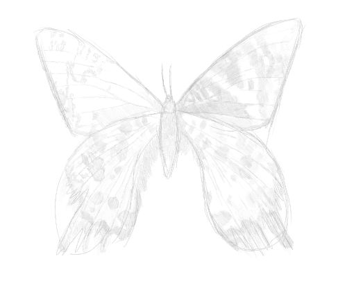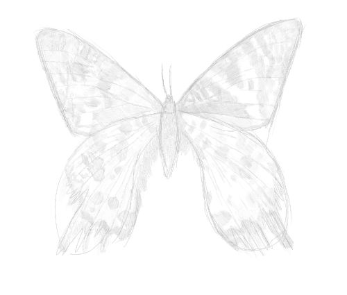 10. Continue in this manner at the bottom of the wing. Note I am beginning to sketch in veins.