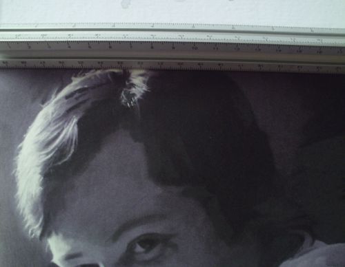 1. I start with a pencil line drawing of the subject in HB pencil. The lines across the arm are showing me where the folds in the clothes will be. I had to ramp up the contrast on the photograph so that's why it looks rather strange. The actual pencil lines are very light.
