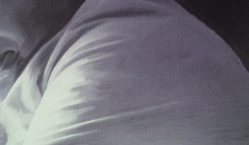 12. Using the same chalk technique I draw the folds of cloth stretched across the shoulder.