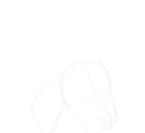 1. Start with an oval for the head and join this to the snout sketched here with simple lines. Keep your lines very light.