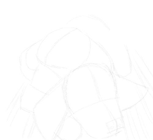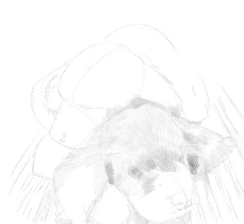 16. I continue in the same manner. Note the direction of the lines on the head and ear. This is very important. Move your drawing around so you can get the angles right.