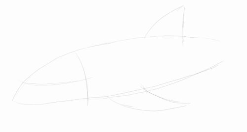 4. I draw the back and dorsal fin. Take care to show the small variations in the contours.