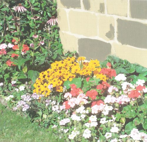 I chose an attractive corner with a fine old wall framing it. Despite the grandeur of the garden as a whole the owner was more delighted with the smaller, intimate scenes than the larger works. I suggest when doing your own flower garden painting you bear this in mind. There is often great charm in quiet, undisturbed areas of a garden.