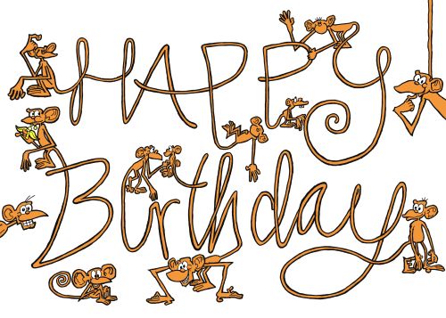 Funny Monkey Drawings Birthday Card.