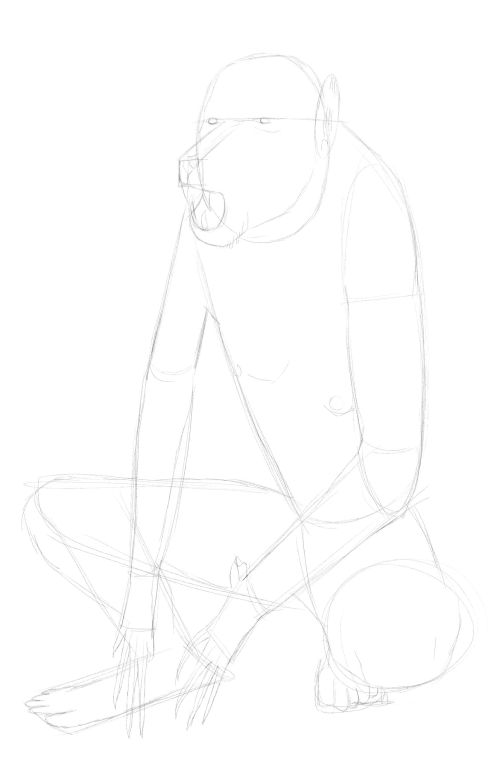 4. The mouth will be larger than a human mouth. I also sketch in the ear. I'm making this halfway between the two creatures.